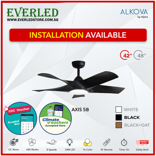 *STANDARD INSTALLATION* Alpha Fan Alkova Axis 5B 56 inch 5 Blades (No LED) *CDC & Climate Voucher Accepted In Showroom*